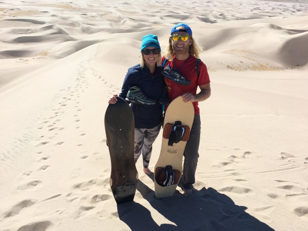 We decided to get back on the road and drive to the Great Sand Dunes National Park so we could maximize the next day. We experienced an amazing sunset as we drove along the long straight road to the camp ground, the sky was alive in deep red and pink colours, I had my beautiful girl to my right with a drink in her hand singing along to tunes - life was pretty great.