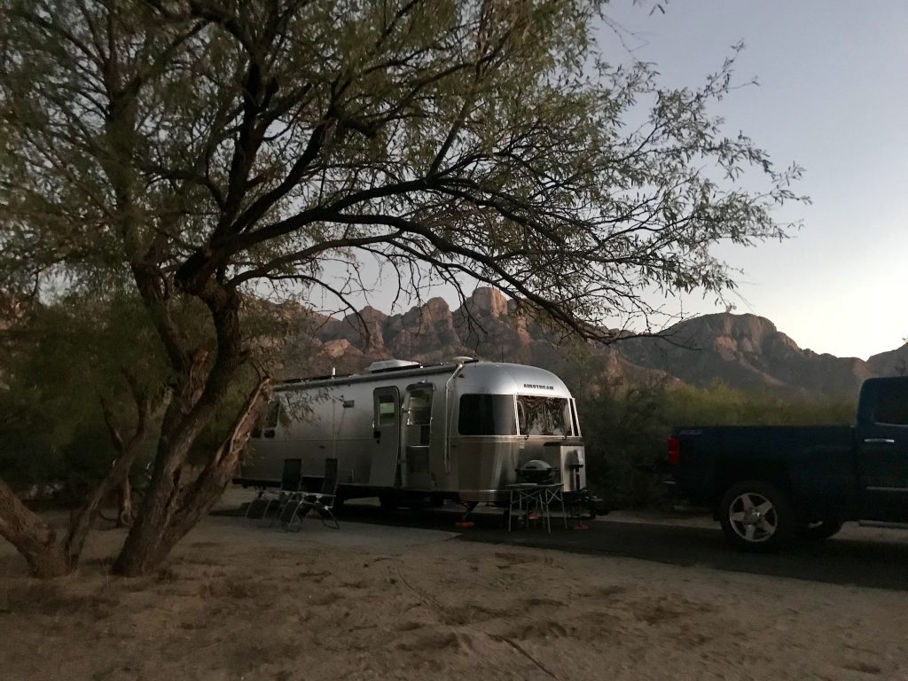 At the base of the magnificent Santa Catalina Mountains is Catalina State Park, a true haven for desert plants, wildlife and nearly 5,000 saguaros, a type of cacti that grows to be over 40 feet tall. Sites there are picturesque, and, as Airstreamers 4airstreamers say, Pusch Ridge and the rest of the Santa Catalina range is “right outside your door!” The landscape of this 5,500-acre park is as varied as it is majestic, with foothills, canyons and streams. At Catalina, you can revel in the glory around you while hiking and biking along the miles of trails that wind through the park and into the Coronado National Forest, at elevations near 3,000 feet. There are over 150 species of birds that call the park home, so have your binoculars handy when you head out for your trek. For people watching and other city activities, the Tucson metro area is just minutes away, though you wouldn’t know it from the remote feel of the park. There are 120 electric and water sites with dump stations on-site, and each has a picnic table and BBQ grill. Roads and parking slips are paved, and campgrounds have modern flush restrooms with hot showers.