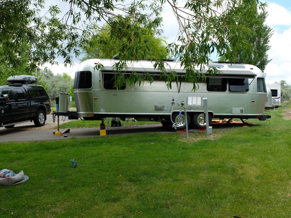 If you’re looking for free camping in a gorgeous setting near Grand Teton National Park, you’ve found it! While camping at beautiful Lower Teton View, Airstreamers will find a large field with a stream nearby, and a trail that leads into the woods for hiking. The location is like that of a lush meadow, with the grass very low in some places and knee-high in others. Moose and elk call the area home, so keep an eye out, and you may catch a glimpse. Plus, Grand Teton National Park is just a hop away, so you can be hiking, biking, kayaking, or sight-seeing within minutes of leaving camp. This real American treasure encompasses approximately 310,000 acres, including the major peaks of the 40-mile-long Teton Range and most of the northern sections of the valley known as Jackson Hole. No matter your favorite outdoor activity – mountaineering, hiking, mountain biking, boating, fishing – you’ll find it in Grand Teton. Back at camp, Lower Teton View is dispersed camping, so you’ll have plenty of room to spread out. This is boondocking, so be sure you’re stocked up on propane and water. If you need to make a supply run, though, Colter Bay is nearby, and Colter Bay Campground offers a free dump site.
