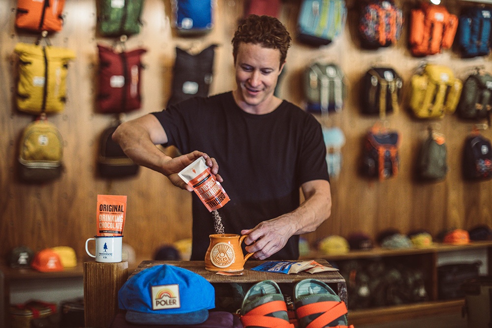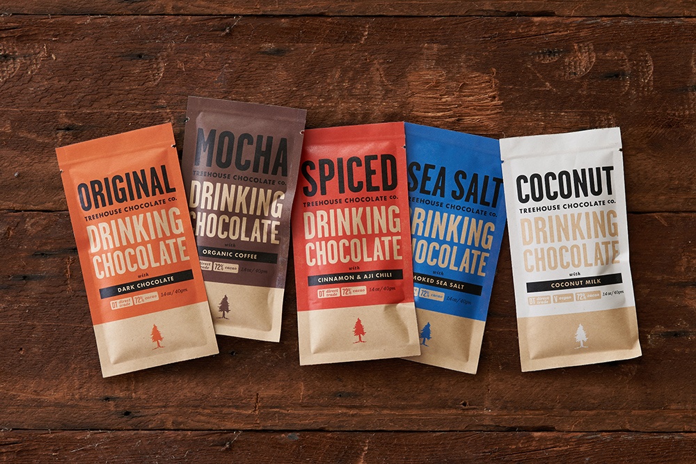 Founder Aaron Koch drew inspiration for Portland-based Treehouse Chocolate from his experience living in a treehouse in Hawaii and working as a cacao farmer. He explains, “Since chocolate bars melt, I developed a single-serving drinking chocolate that can be made using just hot water… it’s darn good stuff!”
