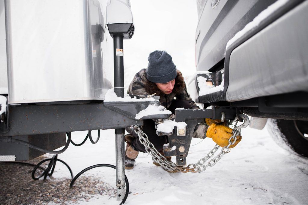 We were pulled over on the shoulder in a mountain pass up above Lake Tahoe. The snow was coming down in half-dollar-sized flakes that left the roadway slushy and the pine trees so heavy with snow that their branches drooped. Lying on my side in the cold, grey muck underneath the Airstream, I tried to figure out how to get the chains on the tires. Needless to say, I had not planned for this. And I did not know what I was doing.