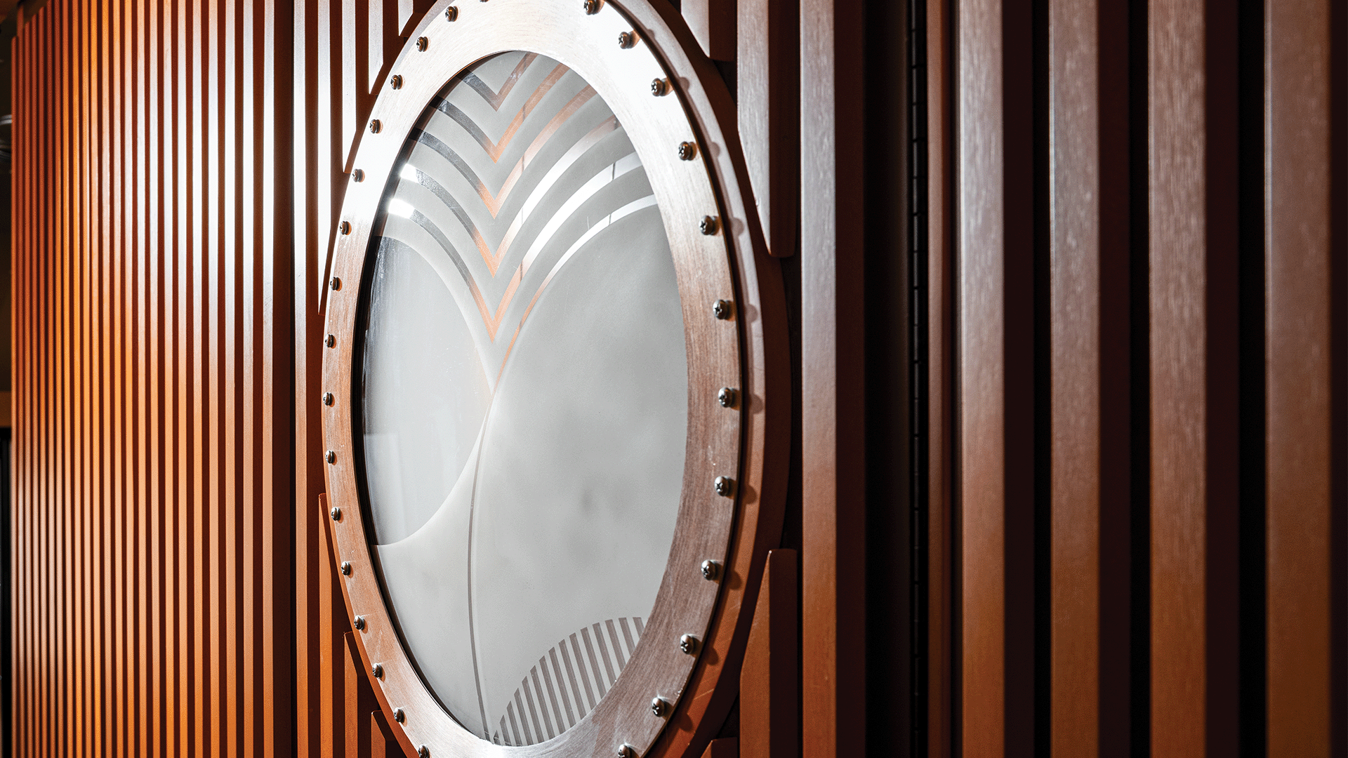 The Gordon Leaf Pattern brings nature inside with elegant, geometric detail and timeless artistry. Iterations of this rarely seen pattern appear in lighting, cabinetry, and doors—bringing nature’s elegance into every detail. This design element adds a touch of sophistication and harmony to the interior, creating a cohesive and aesthetically pleasing environment.